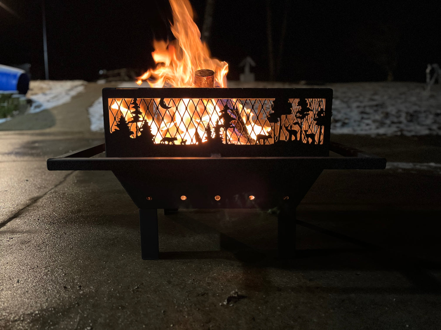 You wont find quality firepits like this outside your local hardware store. Made from 1/8" thick American made steel plate, you'll be the talk of the neighborhood when you fire one of these up. Starting at $350 with several add on options available including griddle tops, pot hangers and foot rests. Custom designs and lettering also available. Contact us for more details